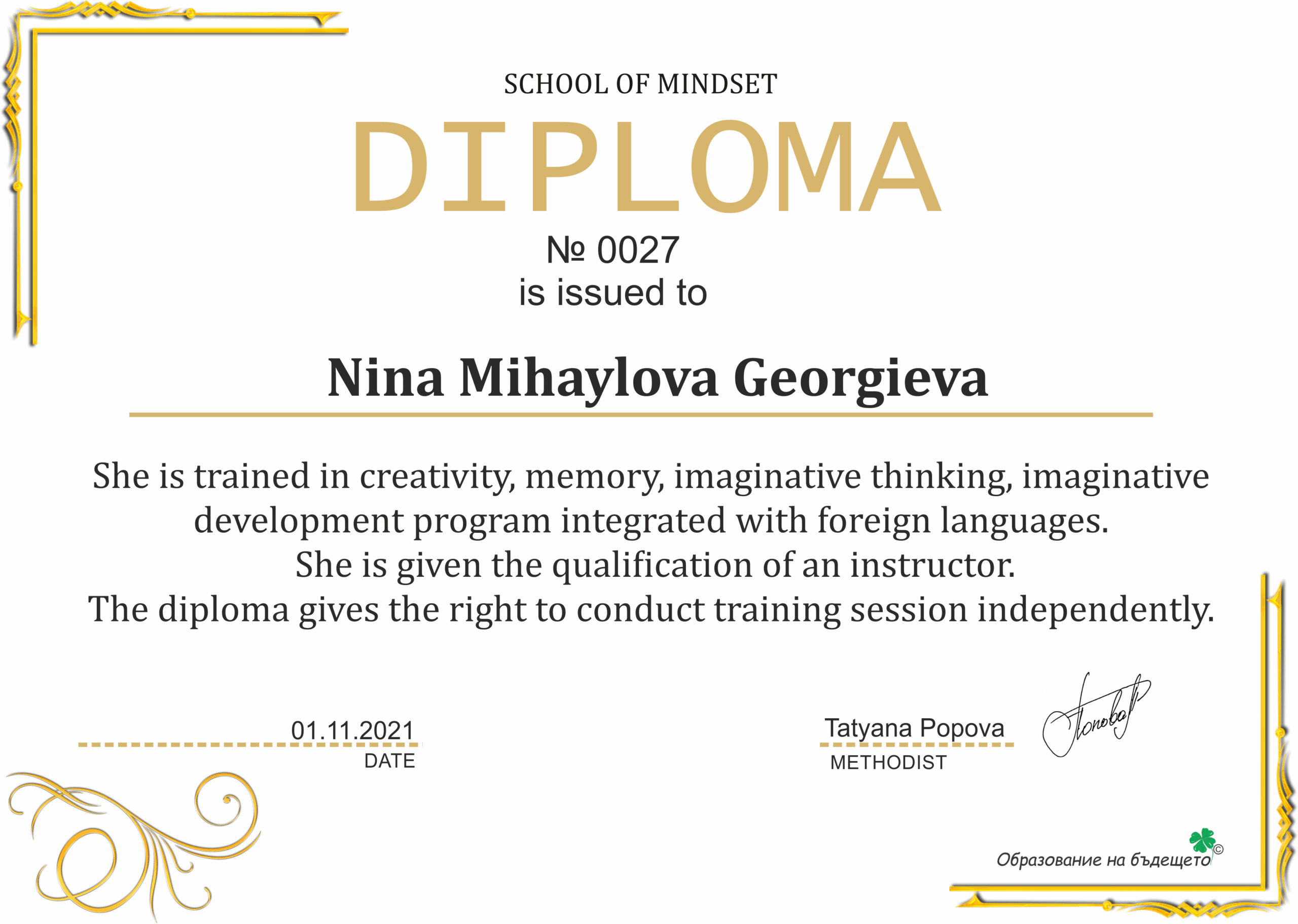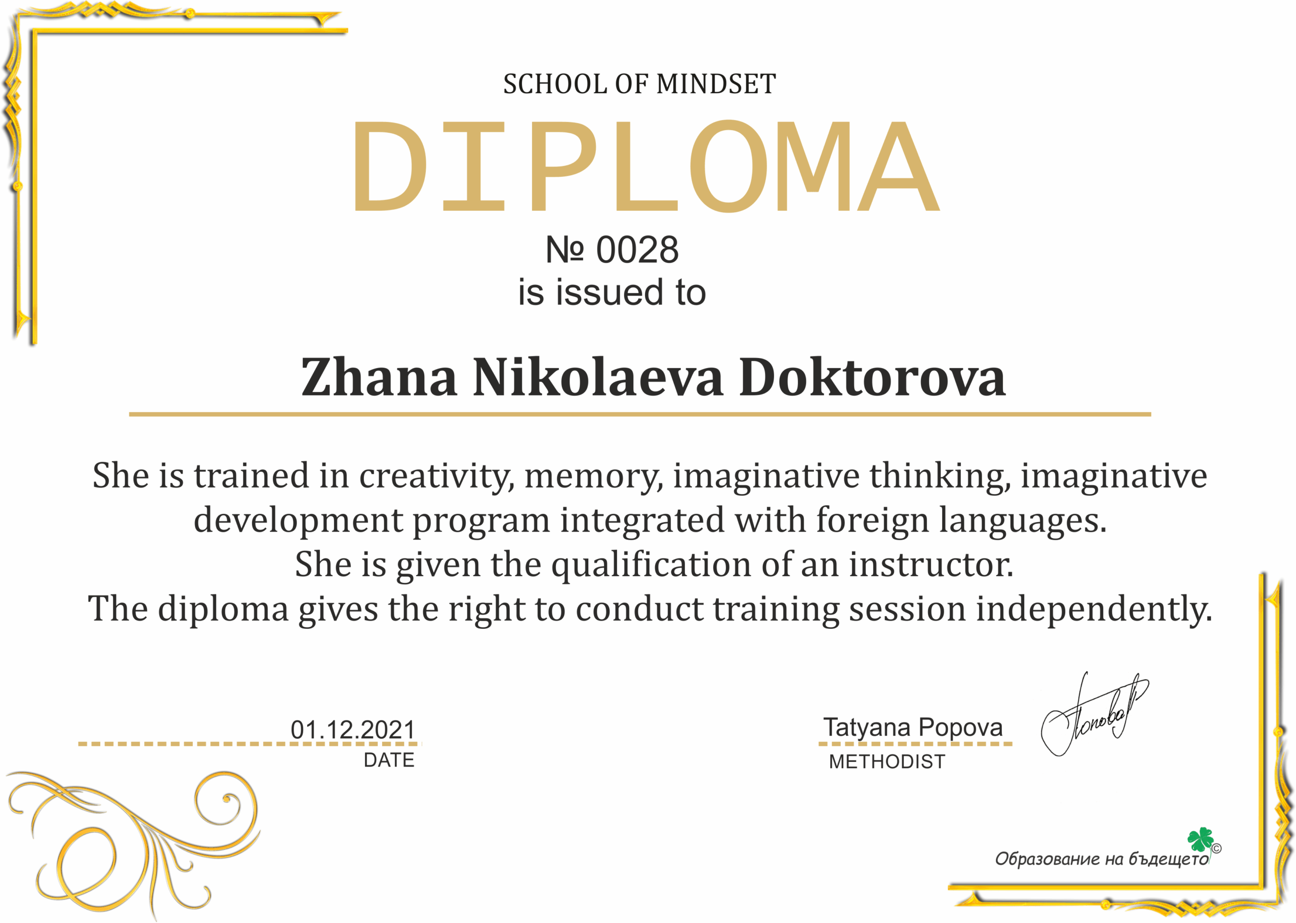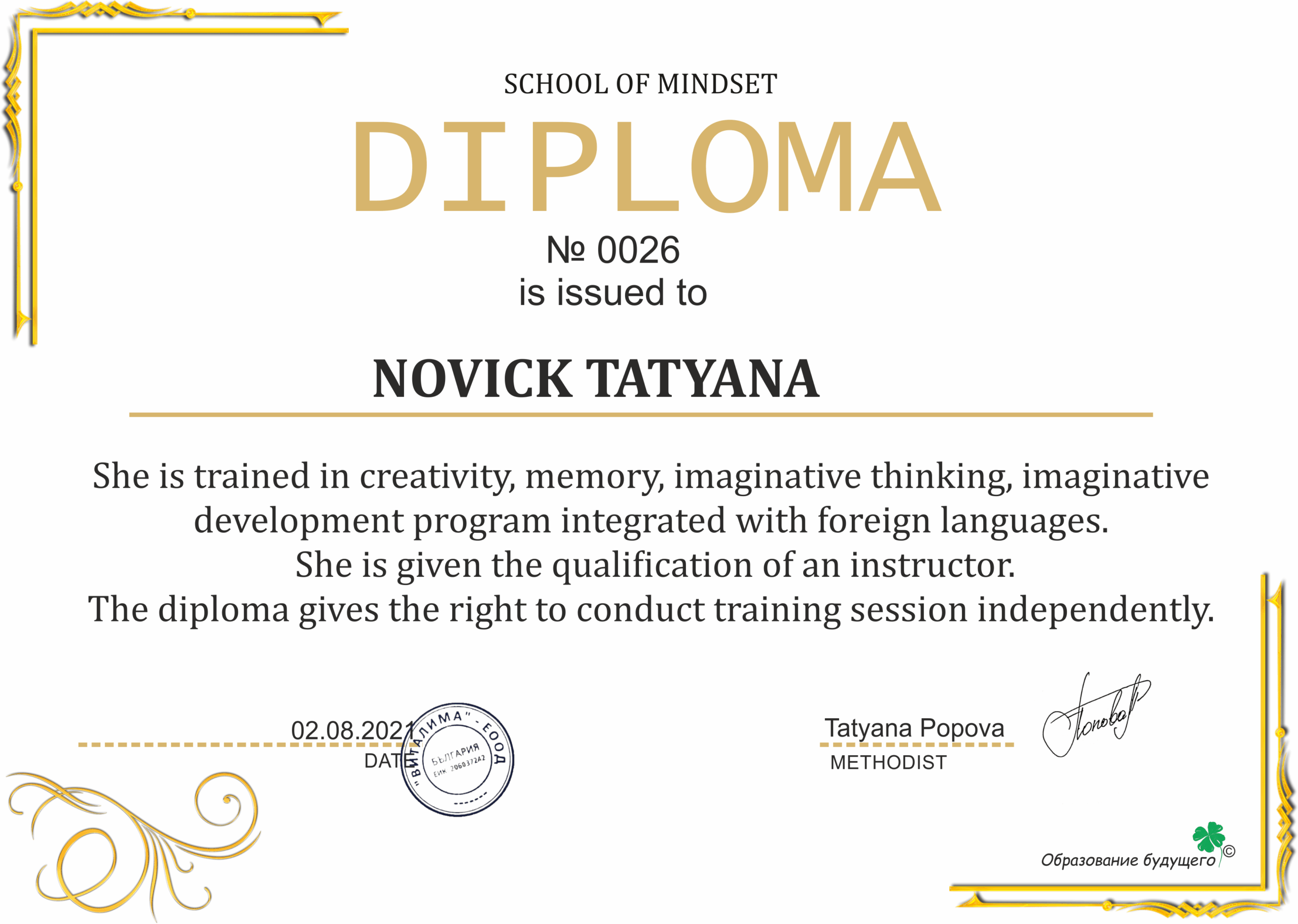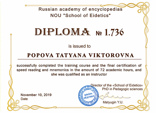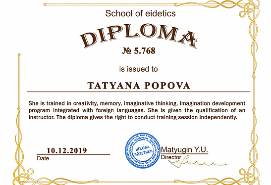 Аз съм Татяна Попова – основател и методист на центъра. От 2016 година активно изучавам мнемоника и ейдетика, усъвършенствам знанията си и разработвам уникални методики на обучение. През 2017 година открих център по ментална аритметика, където нашите ученици постигнаха значителни успехи. Този опит ми позволи да създам иновативни подходи, които помагат на децата да усвояват дори сложен материал с лекота.